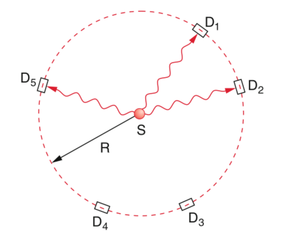 Classical wave optics (Huygens’ principle) explains the interference pattern, but cannot explain single, localized detection events.