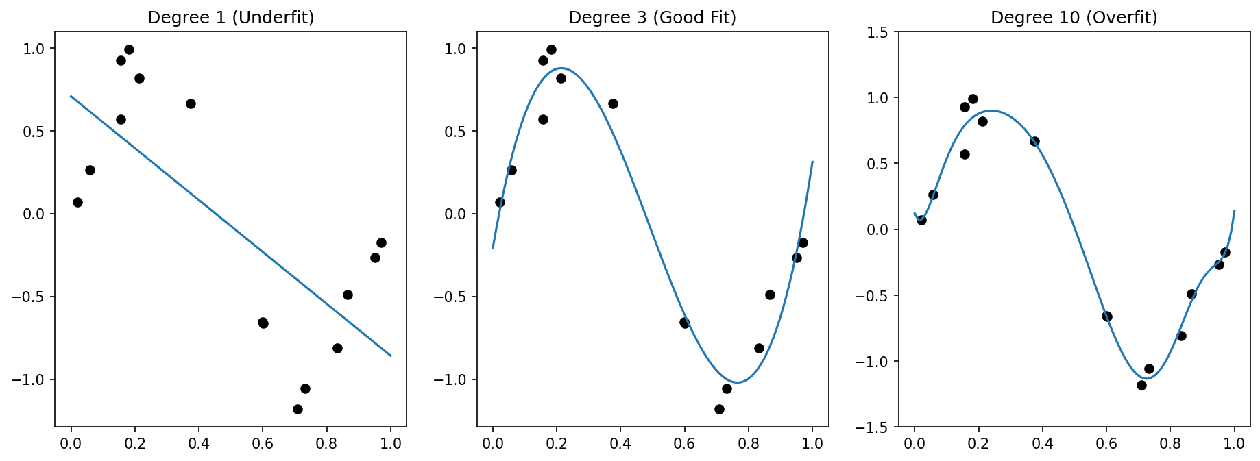 })\[ J_{\text{reg}}(\mathbf{w}) = \underbrace{\frac{1}{N}\sum_{i=1}^{N} L(\hat{y}_i, y_i)}_{\text{data fit}} + \underbrace{\lambda \cdot \Omega(\mathbf{w})}_{\text{complexity penalty}} \]
