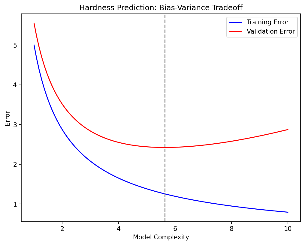 \[ \text{EPE}(\mathbf{x}) = \underbrace{\sigma^2_{\text{noise}}}_{\text{irreducible}} + \underbrace{\big(\mathbb{E}_{\mathcal{D}}[\hat{f}(\mathbf{x})] - f(\mathbf{x})\big)^2}_{\text{Bias}^2} + \underbrace{\mathbb{E}_{\mathcal{D}}\big[(\hat{f}(\mathbf{x}) - \mathbb{E}_{\mathcal{D}}[\hat{f}(\mathbf{x})])^2\big]}_{\text{Variance}} \]