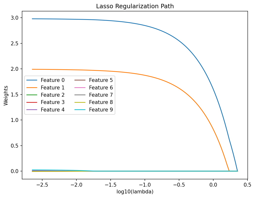 | Sparsity | No (shrinks all) | Yes (zeroes some) |